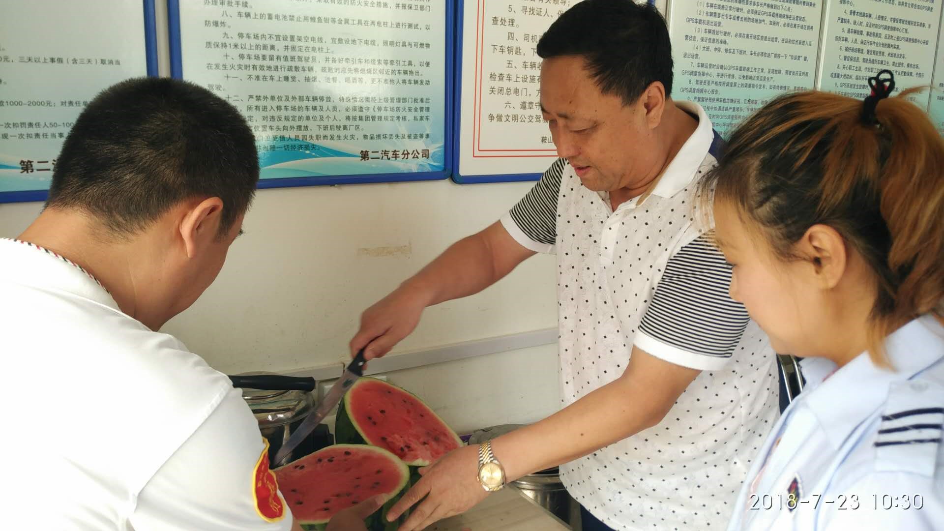 為使交運(yùn)集團(tuán)廣大一線職工度過一個(gè)安全、健康、衛(wèi)生、清涼的夏季,切實(shí)做好暑期安全生產(chǎn)、防暑降溫工作,牢固樹立“服務(wù)一線”意識,入夏以來,交運(yùn)集團(tuán)開展了“情系一線職工 平安度夏送清涼”活動。在集團(tuán)黨委書記、董事長羅玉艷的帶領(lǐng)下,集團(tuán)領(lǐng)導(dǎo)班子成員和各基層營運(yùn)公司及路隊(duì)黨政領(lǐng)導(dǎo)多次頂著酷暑到一線調(diào)度室慰問在高溫天氣下仍堅(jiān)守在營運(yùn)一線的職工,與他們親切交談,叮囑他們要注意身體,注意高溫下的自我調(diào)節(jié),防止高溫中暑,注意安全,杜絕疲勞作業(yè),并親手把西瓜、冰果、冰鎮(zhèn)礦泉水等防暑降溫慰問品送到職工手中,實(shí)實(shí)在在把集團(tuán)對他們的關(guān)懷送到了每位職工心中。職工們表示,集團(tuán)為了給我們駕駛員創(chuàng)造良好的工作環(huán)境,不僅為我們送來防暑降溫物品,還為我們的調(diào)度室配備了空調(diào)、冰箱、飲水機(jī),更新了部分新能源空調(diào)電動車,使我們的工作環(huán)境越來越好,工作起來越來有干勁。在此次送清涼活動中各基層單位根據(jù)自身實(shí)際情況,遇高溫天氣時(shí)由黨政領(lǐng)導(dǎo)親自帶隊(duì)為職工發(fā)放西瓜、冰果、礦泉水等防暑降溫慰問品,并組織維修人員和安全管理人員對各公交場站、車輛安全設(shè)施、調(diào)度室衛(wèi)生等方面進(jìn)行全面檢查,竭力為堅(jiān)守在一線的公交駕駛員提供安全、舒適的工作環(huán)境。 “情系一線職工 平安度夏送清涼”活動的開展,激發(fā)了一線職工愛崗敬業(yè)的熱情和工作的積極性,為平安度夏、健康生活、安心工作提供了有力的后勤支持與保障,為企業(yè)健康、平穩(wěn)發(fā)展起到了積極的推動作用。