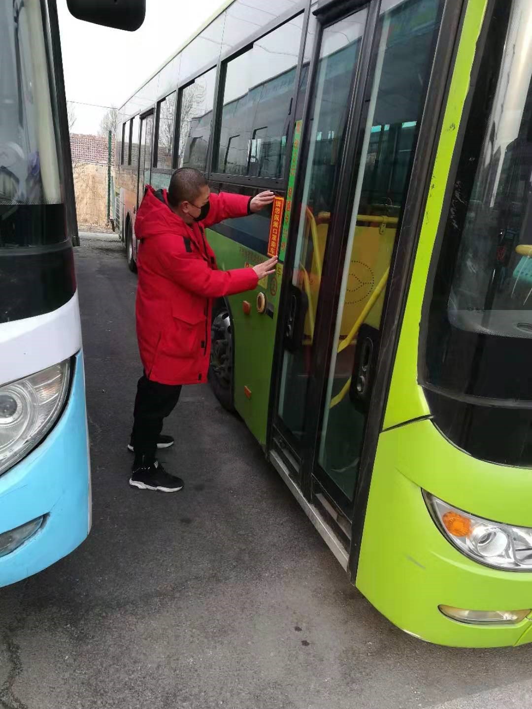 三、延長春節(jié)假期,做好值班工作安排 按照《關于延長2020年春節(jié)假期的通知安排》,通達公司及時做好值班值宿人員安排,值班人員保持手機暢通,確保工作時間在崗,及時了解并傳達上級指示和處理突發(fā)事件。通達公司兩級黨政領導堅守崗位,靠前指揮。根據(jù)疫情發(fā)展情況,及時制定相關應急措施,黨群工作部遠程辦公,按照時間段要求及時傳達、落實、上報疫情防控工作情況。 各隊安排專人定時檢查、發(fā)動、維修、消毒車輛,并派專人對停運車輛進行發(fā)動,檢查天然氣存儲情況和車輛技術狀況。保證車輛可以隨時上線運行,夜間做好停車場防火防盜檢查工作。在樞紐站安排管理人員看管車輛,解答乘客問詢。